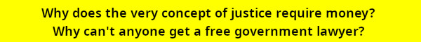 If the government can bring charges against you and you're unable to have someone represent and defend you, that's the route to totalitarianism. You're stripped of your rights. While moving the bar of indigency upward would alter the calculus somewhat, and rid us of the assumption that poor means dirt poor, and anyone who isn't dirt poor is wealthy enough to afford to pay for a criminal defense, it reduces the number of people who fall into the no-man's-land of criminal defense but does not eliminate the problem. People who are solidly middle class, maybe even upper middle class, really aren’t equipped to handle a serious criminal defense. The concept of equal protection under the law in the Fourteenth Amendment seems limited to certain characteristics such as sex, age, race and religion but not wealth. The Gideon v. Wainwright decision distinctively discriminates based on wealth. Why? Why does the very concept of justice require money? Why can't anyone get a free government lawyer. All Americans should have the right to counsel at government expense when the government charges them with a crime. We should have a universal public defender system, one to which all Americans can turn to counsel when they are accused. Taxpayers fund each prosecution no matter how grave or frivolous. Why not create a system that funds both prosecution and defense equally. In plain English, each and every person accused of a crime should have court appointed counsel with the same resources as the prosecutorial side. Prosecutors have virtually unlimited discretion to bring charges and they are armed with staffs that include not just investigators, but experts from forensics labs and the efforts of law enforcement at the local, state and national level. Very few defendants faced with this arsenal are as well equipped and can provide an adequate defense to a criminal case. A universal public defender system does not mean conscripting all members of the bar and making them government employees. It means that all members of the bar can apply to be included on a list of qualified defenders. It also means that making your way onto that list and remaining there, requires demonstrating minimal competence in the difficult work of defending the accused. A ddefendant should get a free lawyer with the same experience level as the district attorney (one whose sole purpose in life is to prosecute). When the government charges a person with a crime, the work of police officers, prosecutors, experts and investigators are all borne by taxpayers. The full weight of the government, with it's almost magical ability to finance just about anything by means of taxation, is brought to bear against an individual. Who can match the government's spendng and resources in defending a crime? The only way to rein in an aggressive government is to require it to bear the costs of the fights it picks. The government should be required to calculate the unit cost of each prosecution: what does it cost to bring an action? And we speak here of both the prosecution and defense. The notion that justice requires money makes a mockery of the judicial system and clearly shows the corruption of the judicial system.